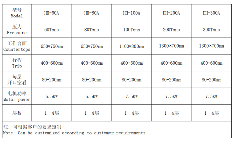 1、四柱导向平衡结构,确保工作台面压力均匀;2、采用液压系统装置,性能稳定,噪音小;3、采用PLC触摸屏控制,精准度更高;4、热压机为钢板电热管加热方式,保压时间可调;5、采用多层工作台,提高效率的同时节省空间。