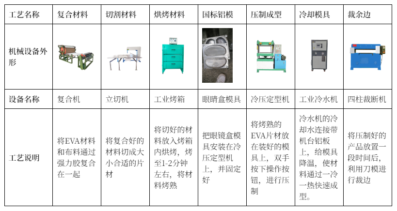 eva眼镜盒制品是属于冷压工艺,把大片片材和卷材裁成大小合适的片材,然后放入烤箱烘烤,烤好后将材料放在用冷压机上压制,压制的过程中,冷水机给铝板制冷,使材料通过一冷一热达到快速定型的效果,将压制好的产品放置一段时间后就可以余边裁断,这样一个半成品就做好了!